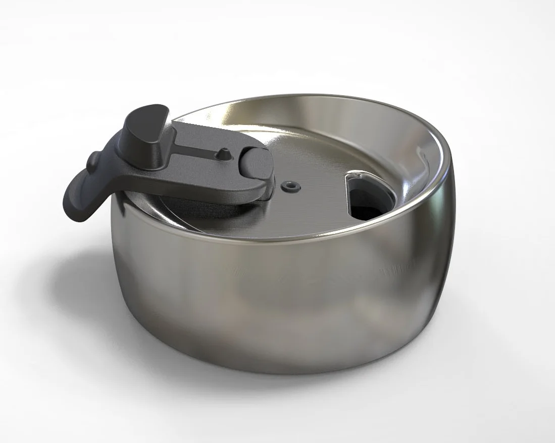 I designed the mechanism and built the CAD files for a line of drink-through caps. The caps are skinned in stainless steel, requiring internal seals to keep water out of the assembly. The above image is a Keyshot rendering of my Solidworks files.